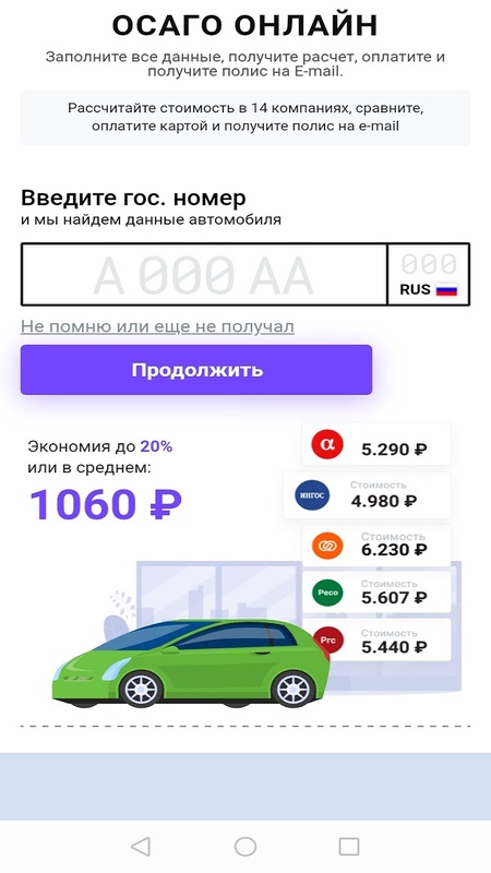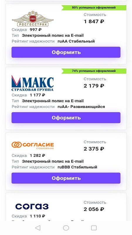 Оплата за полис напрямую на сайте страховой компании.