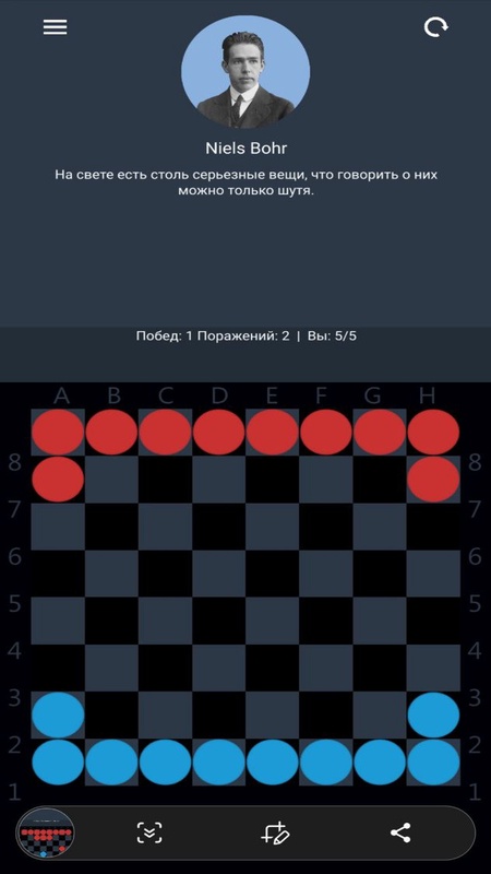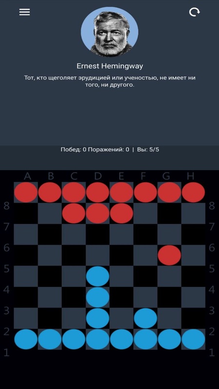 Игра психологическая и стратегическая. Вам предстоит сразиться с различными персонажами, имеющими различную манеру игры. Ходы делаются одновременно, что существенно отличает игру от большинства других игр, в которых противники ходят по очереди. Сыграть можно любой своей шашкой на любое свободное соседнее поле. Если в результате перемещений шашек какие-либо две шашки оказались на одном поле, они обе снимаются с доски. В противном случае шашки переставляются. Цель - достигнуть противоположной горизонтали выжившей шашкой.