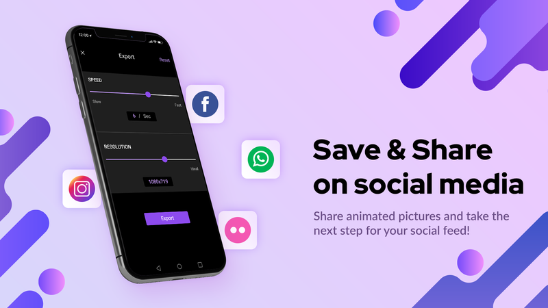 Создатель анимации с интуитивно понятными стрелками задает направление движения фотографии. Смена фона с потрясающими фильтрами. Анимационные эффекты для изображений с наложениями, блестками и т. д. Редактор графических эффектов. Auto Play Создавайте живые обои с эффектами сбоев.