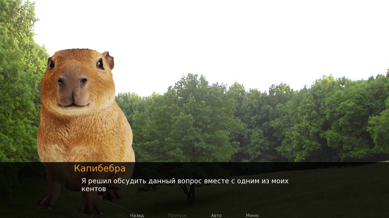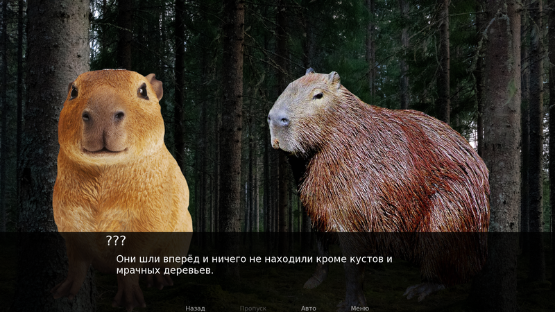 Капибарные приключения - это визуальная новелла, в которой тебе предстоит увидеть приключения Капибебры и Капибобра! Что же вынудило их отправиться в данные приключения и что их ждёт..?