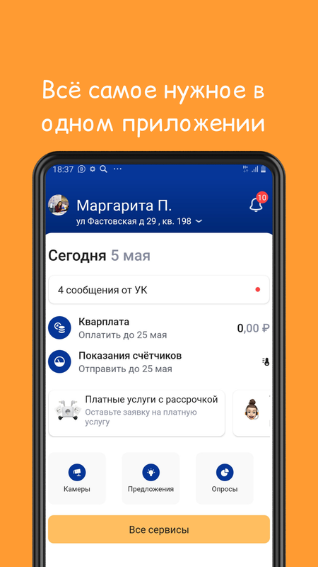Оплачивать счета, подавать заявки, передавать показания счетчиков, участвовать в общих собраниях и опросах, получать уведомления от компании, просматривать изображения с камер, открывать шлагбаумы/ворота. Все эти возможности реализованы в нашем приложении.