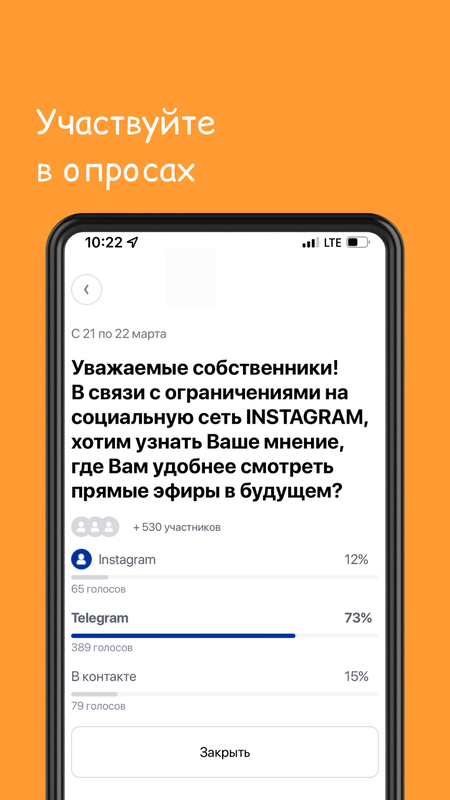 - принять участие в опросе или голосовании онлайн, отследить его результаты в режиме реального времени;