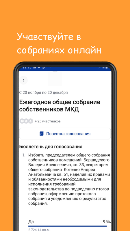 - подать предложения по включению работ в план на будущие периоды, увидеть предложения управляющей компании и своих соседей, обсудить предложения в чате;
