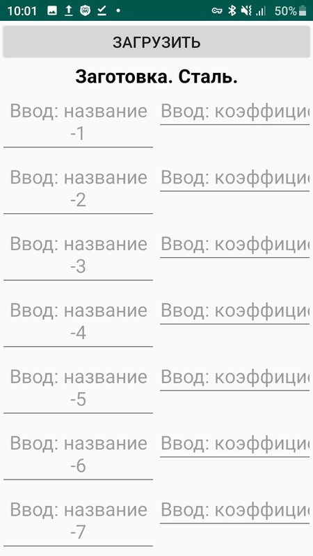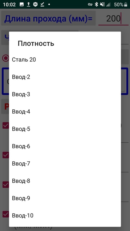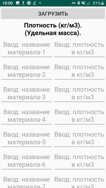 На экране-1 по кнопке [Плотность] перейти и ввести в таблицу наименование материала в левый столбец и числовое значение в правый.