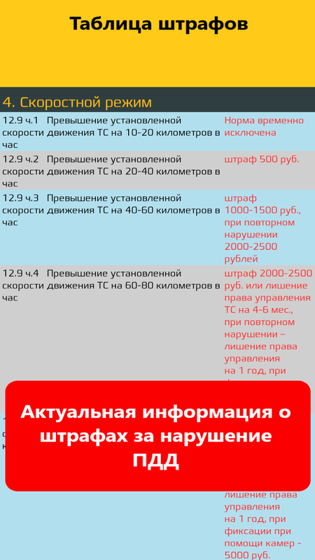- Таблица штрафов и допусков
