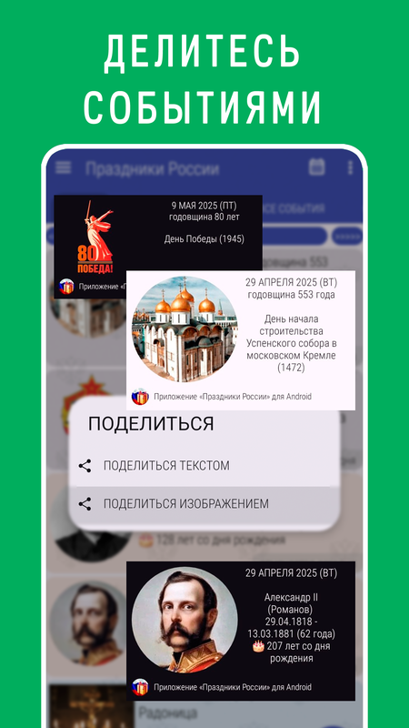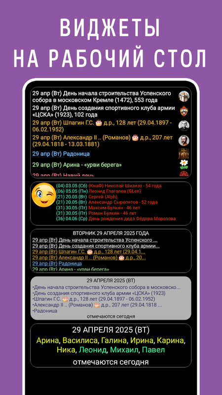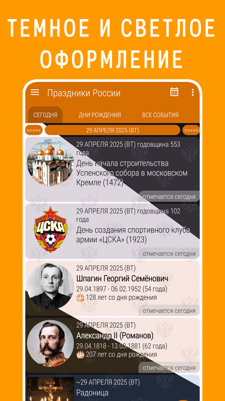 Праздники и памятные даты отмечаемые в России. Дни рождения контактов. Именины.