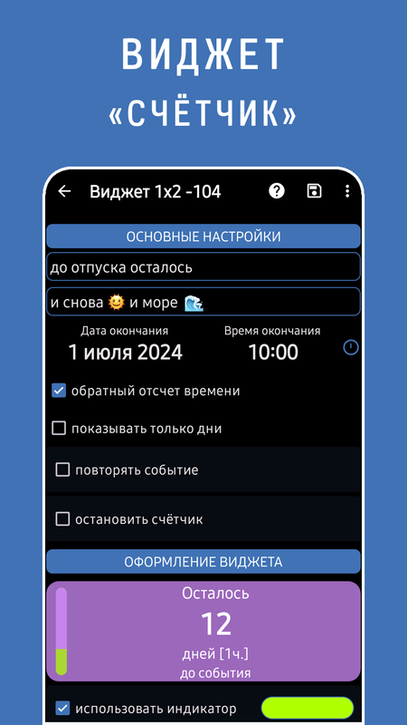 Виджеты для слежения за любым событием, счетчик дней, сколько прошло времени.