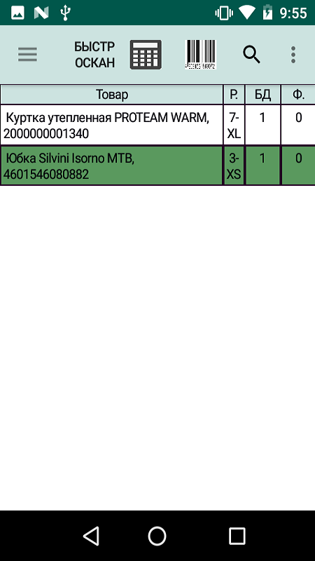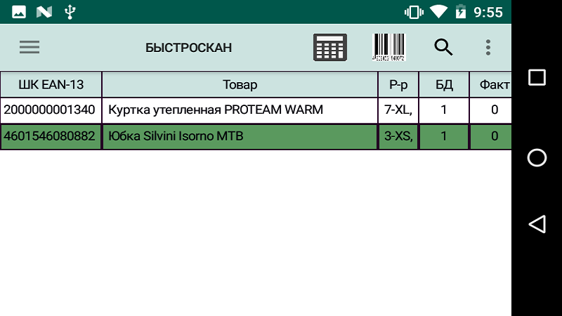 -в любой момент вывести на экран ТСД таблицу с расхождениями товара (между требуемым и фактическим).