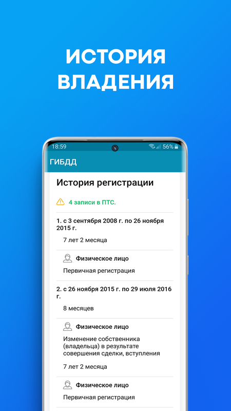 Получение основных сведений о транспортном средстве и периодах его регистрации в ГИБДД за различными собственниками. Получении данных об утилизации автомобиля. Проверка истории авто.