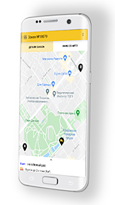 - Движение водителя видно на карте;