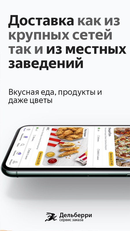 Дельберри — это сервис для заказа готовой еды из любимых кафе и ресторанов: от бургеров до суши, от борща до мороженого. Найдётся и пицца, и роллы, воки, бургеры, сэндвичи, кавказская кухня. А ещё цветы и продукты из других магазинов.