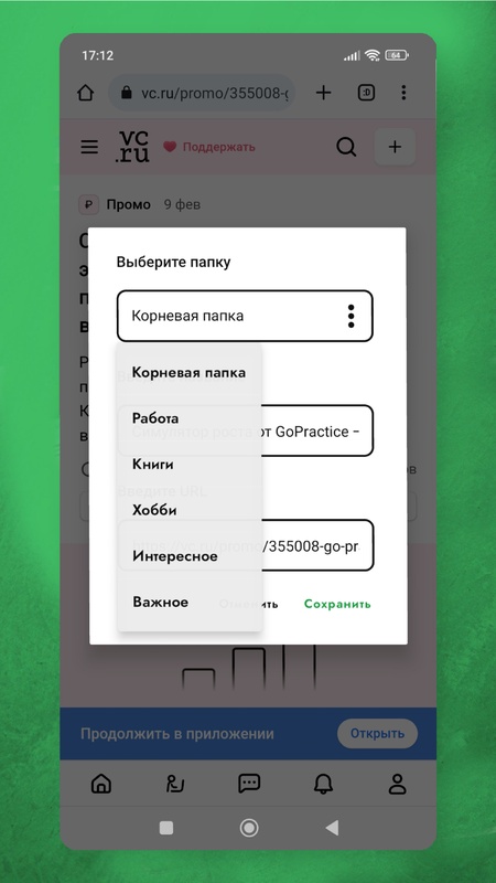 19 мая 2022, 18:38Удобно сохранять ссылки. Классно, что есть возможность сортировать их по папкам
