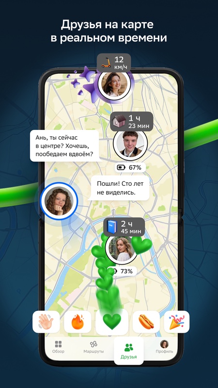 Отправьте другу эмодзи, чтобы предложить встречу, или сразу начните переписку в чате, не переходя в мессенджер.