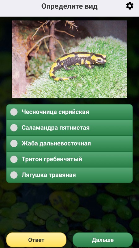 Неограниченное число вопросов на узнавание амфибий по внешнему виду! Играть можно многократно – вопросы на знание видов чередуются в случайном порядке и ни разу не повторяются! Также можно настраивать сложность Викторины и использовать различные виды изображений (рисунки или фотографии).