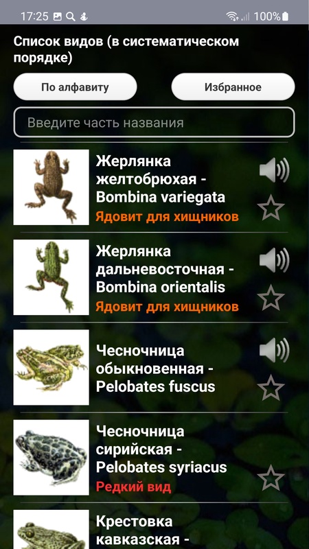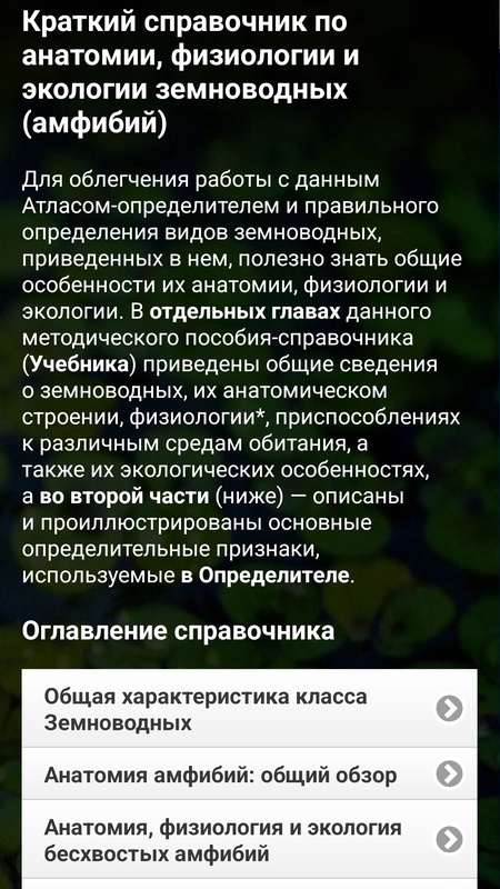 Атласом можно пользоваться и независимо от определителя – просматривать описания и изображения видов, а также описания и состав родов, семейств и отрядов класса амфибий.