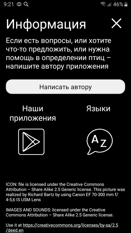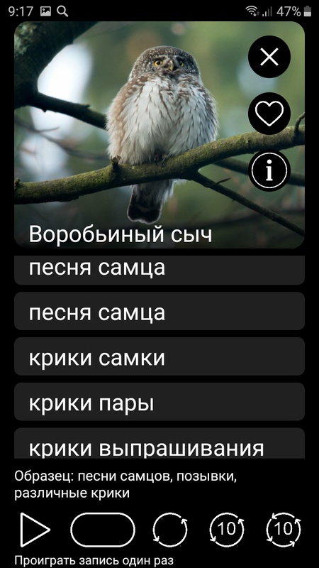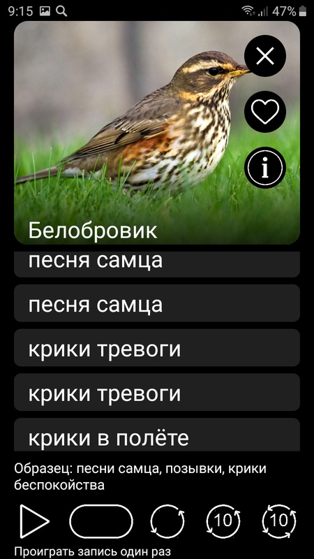 Не используйте приложение для длительного проигрывания голосов, это может повредить птицам, особенно в гнездовой период. Проигрывайте записи для привлечения птиц не дольше 2-3 минут! Если птицы проявляют повышенную агрессию - прекратите проигрывание записей.