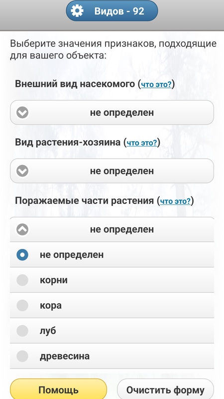 Определителем может пользоваться даже неспециалист — достаточно увидеть или сфотографировать насекомое или оставленные им повреждения. В определителе нужно выбирать подходящие для вашего насекомого особенности признаков. С каждым выбранным ответом число видов будет уменьшаться, пока не придет к минимальному числу.