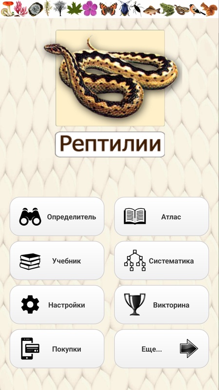Атласом можно пользоваться и независимо от определителя – просматривать описания и изображения видов, а также описания родов, семейств, подотрядов и отрядов класса рептилий.
