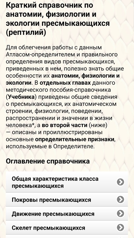 Атласом можно пользоваться и независимо от определителя – просматривать описания и изображения видов, а также описания родов, семейств, подотрядов и отрядов класса рептилий.