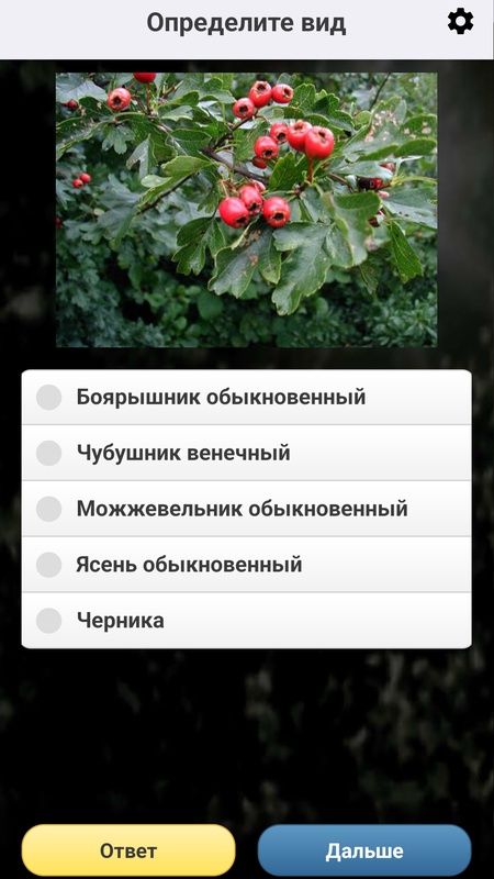 Неограниченное число вопросов на узнавание древесных растений по внешнему виду! Играть можно многократно – вопросы на знание видов чередуются в случайном порядке и ни разу не повторяются! Также можно настраивать сложность Викторины и использовать различные виды изображений (фотографии растений или сканографии побегов).