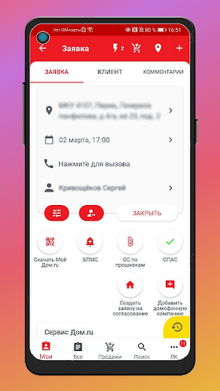РМС - Рабочее место специалиста компании Эр-Телеком Холдинг (Дом.ru). Приложение создано для автономной работы сотрудников, объединяет в себе инструменты АРМа, EQM и сервис геолокации для выполнения заказов.