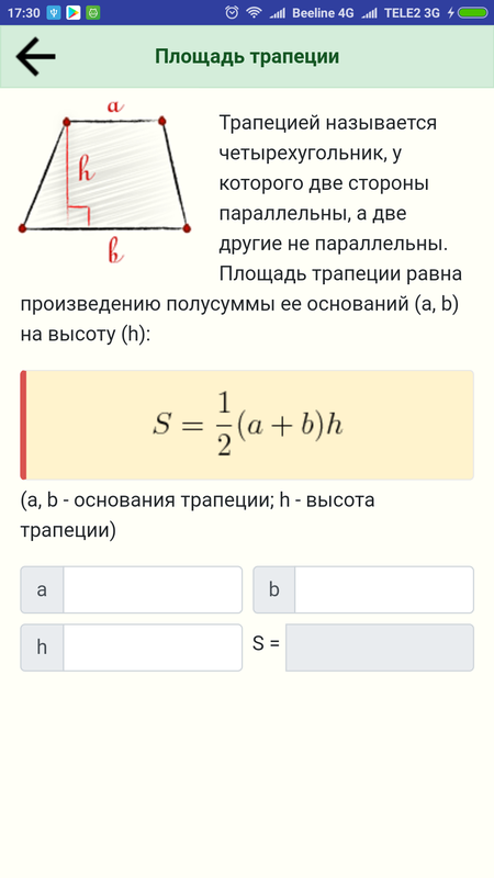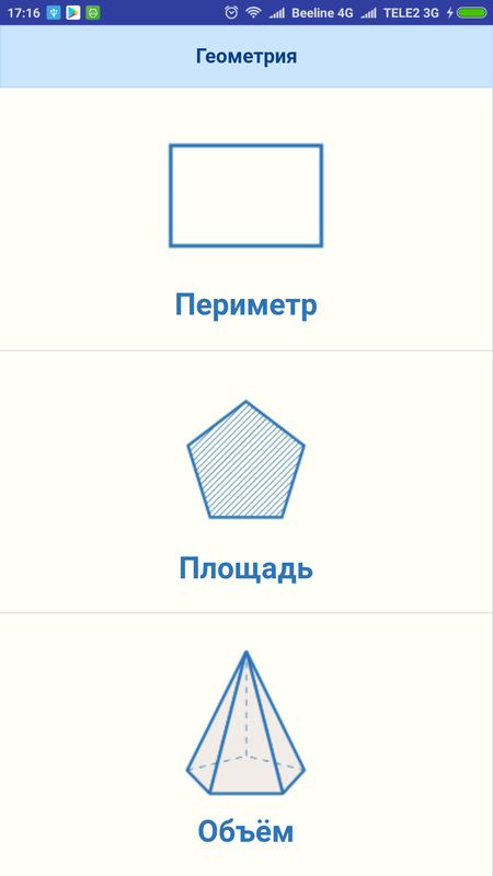 Это приложение – бесплатный справочник формул геометрии для вычисления периметра, площади и объема геометрических фигур и объемных тел.
