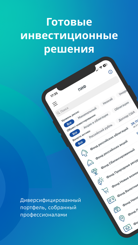 Приложение позволяет клиентам проводить операции и получать информационную поддержку по приобретенным инвестиционным продуктам, а именно: