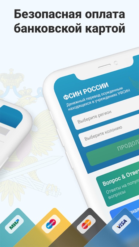 Приложение "ФСИН России - денежные переводы" предназначено для отправки денежных средств лицам, находящимся в исправительных учреждениях (ИУ) и СИЗО ФСИН России. Приложение обслуживает все исправительные учреждения во всех регионах Российской Федерации без исключения.
