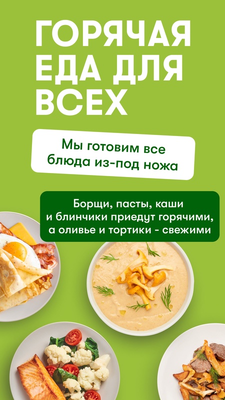 Пока вы знакомитесь с нами, мы приготовим и доставим кому-то суп, плов или поке, чтобы они могли не ходить в магазин и кафе.