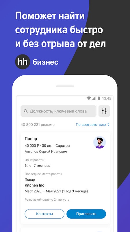 Нужен сотрудник? Мобильное приложение «hh бизнес» для работодателей поможет вашему бизнесу найти персонал быстро и прямо в телефоне.
