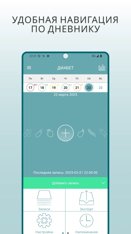 ДИАБЕТ® - очень гибкое и человечное приложение для ведения дневника диабетика и ГИБКОЙ инсулинотерапии у людей с диабетом 1 и 2 типа! Несмотря на огромное сочетание функций, среди которых редкие и уникальные, приложение удобное и понятное для восприятия даже новичкам. Создано при участии врачей и получило официальное признание в Минздраве РФ.