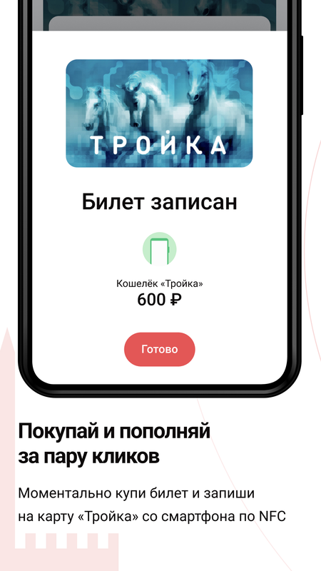 * Обратите внимание, не все устройства и смартфоны с NFC поддерживают карты «Тройка» (чип NFC Mifare). Поддержка зависит не от приложения, а от самого устройства. Однако если ваше устройство не поддерживает карты «Тройка», вы всегда можете записать оплаченные билеты на карту в одном из сотен терминалов в удобном для вас месте. Просим учитывать это, прежде чем писать отзыв.