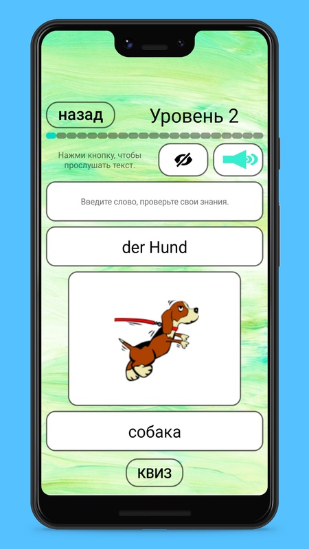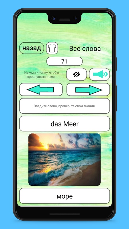 Хотите выучить немецкий язык быстро и эффективно и непринужденно разговаривать на нем? Тогда это приложение для вас. Изучение немецкого языка ещё никогда не было таким простым — запоминайте слова и улучшайте свой словарный запас. Приложение «Немецкий язык учить слова» подходит для изучения немецкого языка. Изучайте немецкий язык с помощью карточек слов, запоминайте слова играя в викторину и улучшайте свой словарный запас.