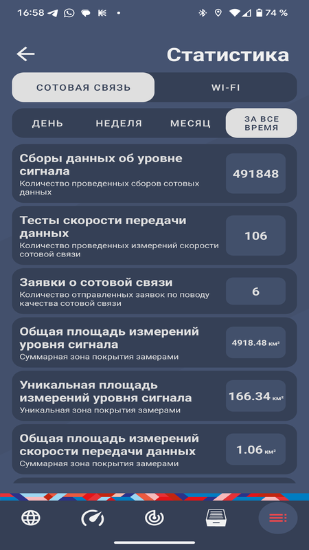 — Достижения и рейтинг пользователей. Станьте исследователем связи в своём районе: ваши измерения помогают сделать связь лучше для всех, а личная статистика и достижения — повод для гордости!