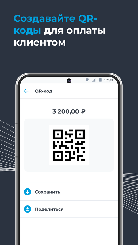• создавать динамические QR-коды для проведения платежей (в том числе повторных) от клиентов;