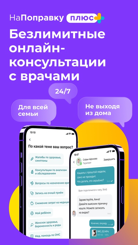 НаПоправку Плюс - подписка на здоровье для всей семьи. Консультируйтесь с врачами в чате без ограничений — на связи 24/7.