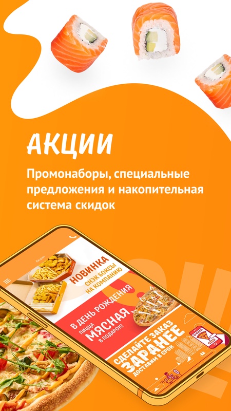 Привезем все горячим и аккуратно упакованным прямо к вашей двери. Доставка от 30 минут!”