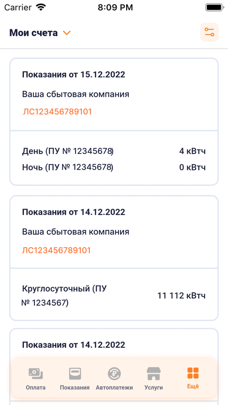 – Следите за состоянием лицевых счетов, историей платежей и показаний.