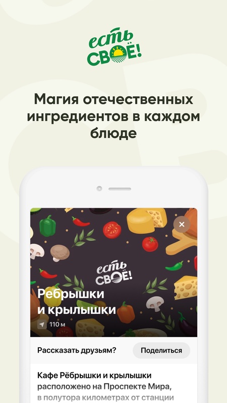 Откройте вкус России с приложением «Есть своё!» – вашим гидом по ресторанам и любопытным объектам на ВДНХ. Во время международного форума-выставки «Россия» он будет сопровождать вас в интересном гастрономическом путешествии через всю страну, где каждое блюдо – это пёстрая мозаика продуктов из её разных уголков.