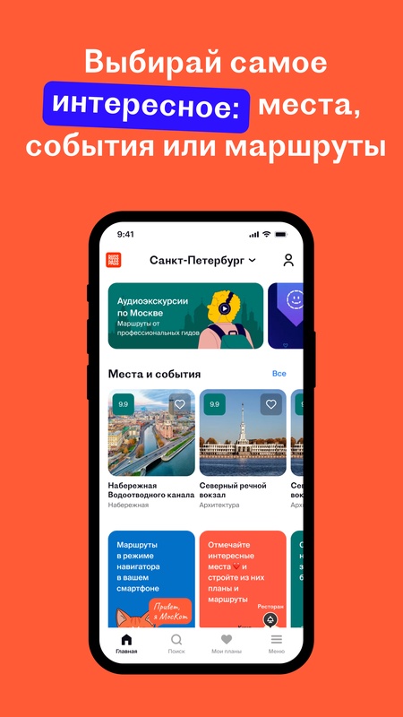 - Исследовать города с помощью готовых маршрутов с трекингом GPS