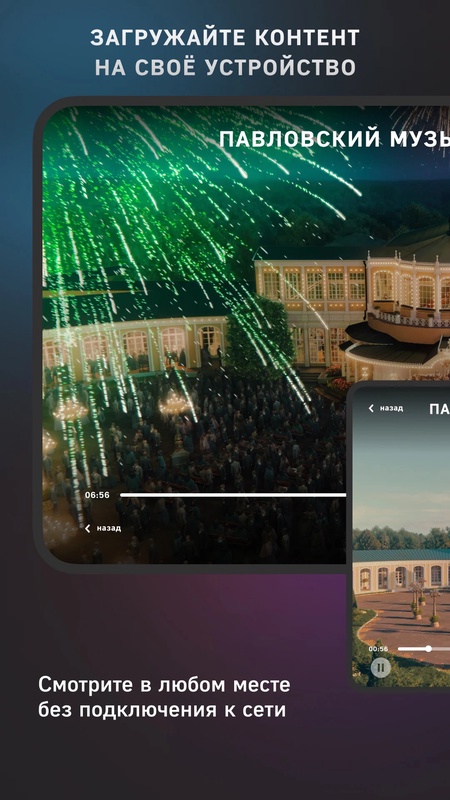Любой контент из каталога можно загрузить на телефон прямо из приложения. Пользуйтесь приложениями и смотрите фильмы в любом месте даже без выхода в интернет.