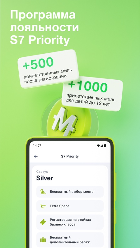 Зарегистрируйтесь в программе S7 Priority и получайте мили за полеты, бронирование отелей и покупки у наших партнеров. Потратить мили можно на билеты на самолет и на дополнительные услуги: например, багаж или перевозку животного.