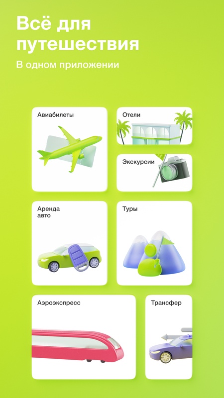 Авиабилеты, отели, экскурсии, авто, аэроэкспресс и трансфер — в одном приложении
