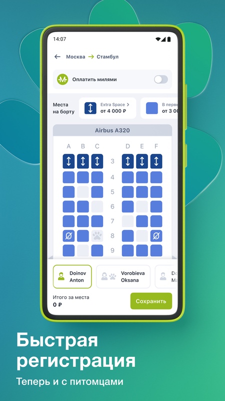 Мы ценим ваш комфорт и время. Обменяйте или верните билеты, добавьте багаж, выберите место на борту, закажите блюдо из специального меню, оформите страховку для спокойного путешествия не выходя из приложения.