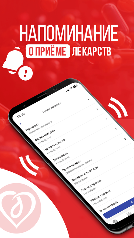 - Напоминания о приеме лекарства