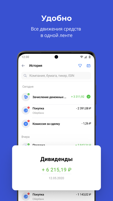 • комфортный контроль всех операций: история заявок и всех транзакций по счету, удобные фильтры и детализация.