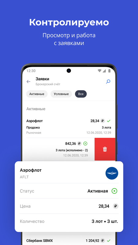 • данные об эмитенте и просмотр параметров активов – вся необходимая информация на экране смартфона;