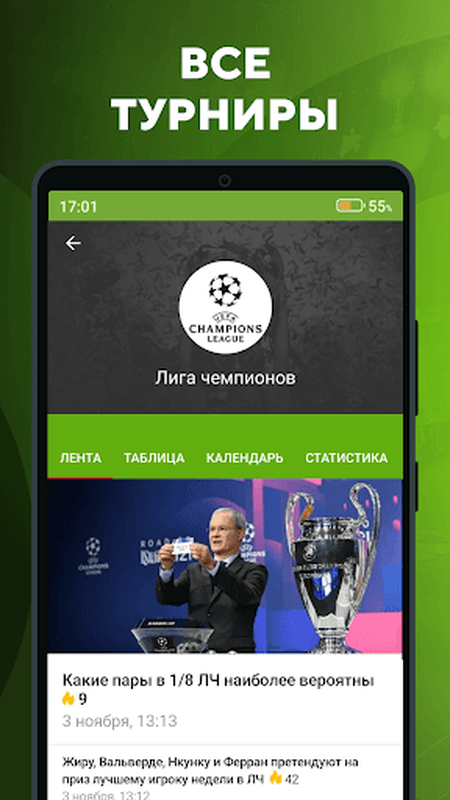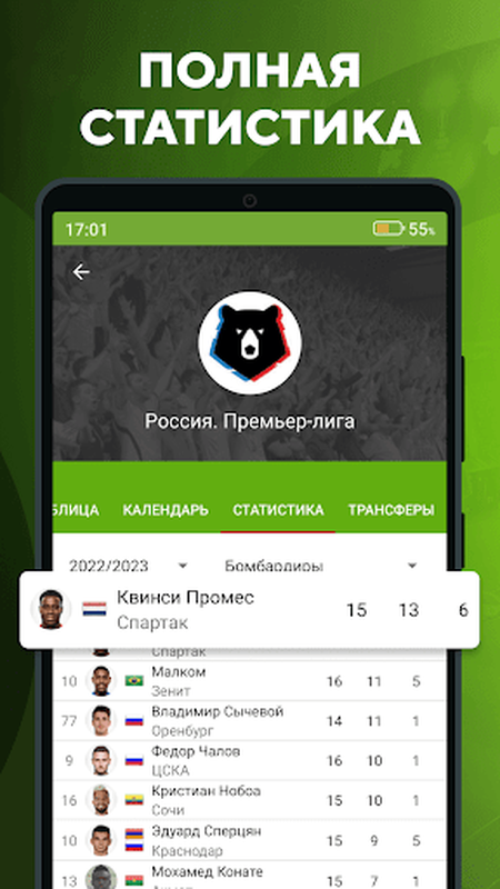 Футбол от Sports.ru в 2023 - это вся информация о главных футбольных турнирах Европы и мира: Чемпионат России (РПЛ), Лига чемпионов (ЛЧ), Лига Европы (ЛЕ), английская Премьер-лига (АПЛ), испанская Ла Лига, Бундеслига, итальянская серия-А, Кубок России и другие турниры 2022 #прямосейчас. В приложении вы найдете: • Все новости и картину дня; • Расписание, календари, трансляции, видео и результаты матчей всех турниров; • Самый полный каталог футбольной статистики в режиме онлайн; • Турнирные таблицы и статистику бомбардиров; • Лучшие тексты, интервью и репортажи; • Блоги и материалы пользователей о РФПЛ, АПЛ, чемпионате Испании, Италии, России, чемпионате Германии и других турниров; • Общение с другими болельщиками. Лионель Месси, Криштиану Роналду, Роберт Левандовски и другие звезды футбола в быстром доступе на вашем телефоне. Не пропустите ни одной новости!