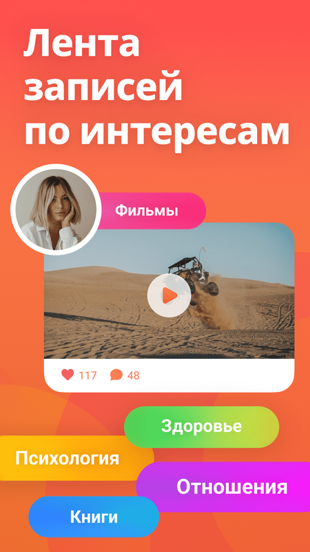 Пишите симпатичным людям, получайте лайки, размещайте фото и оставляйте комментарии: интересные знакомства и общение - совсем рядом! Ждите в профиле гостей, приглашайте на встречу тех, кто живет рядом и открыт новому, следите за лентой, наслаждайтесь прочими бесплатными возможностями нашего приложения.