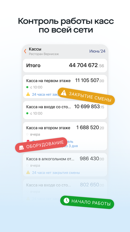 Анализ продаж, отчет по деньгам, контроль касс и чеков